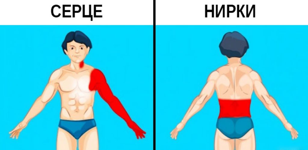 Біль у нирках іноді можна сплутати з пересічним болем у спині. Відмінність полягає в тому, що нирки болять глибше, під ребрами. М’язовий біль зазвичай відчувається нижче ниркового.