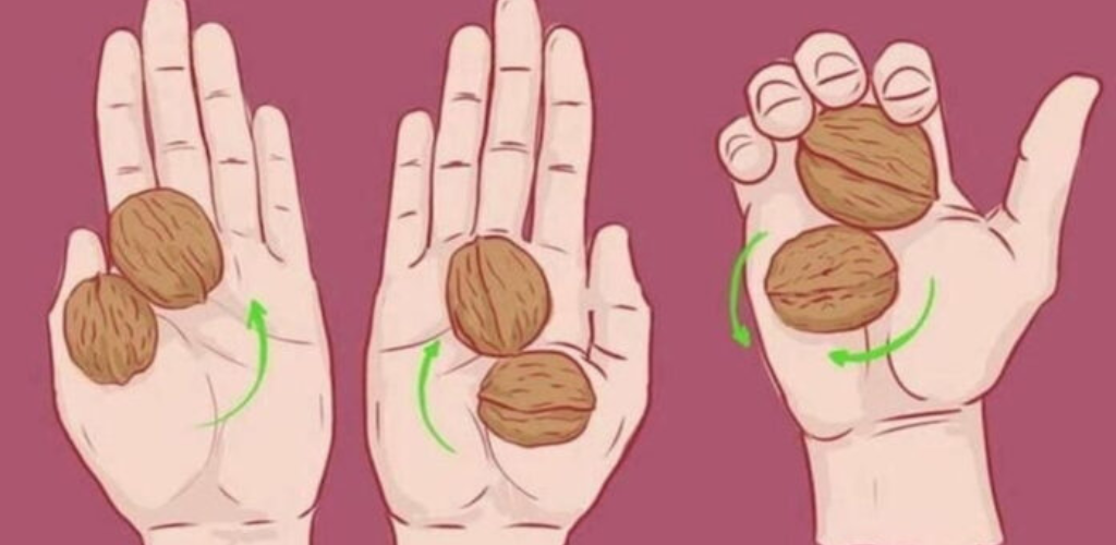 - Помістіть горіх всередину долоні, злегка натисніть на неї долонею іншої руки і рухайте горіхи по колу.